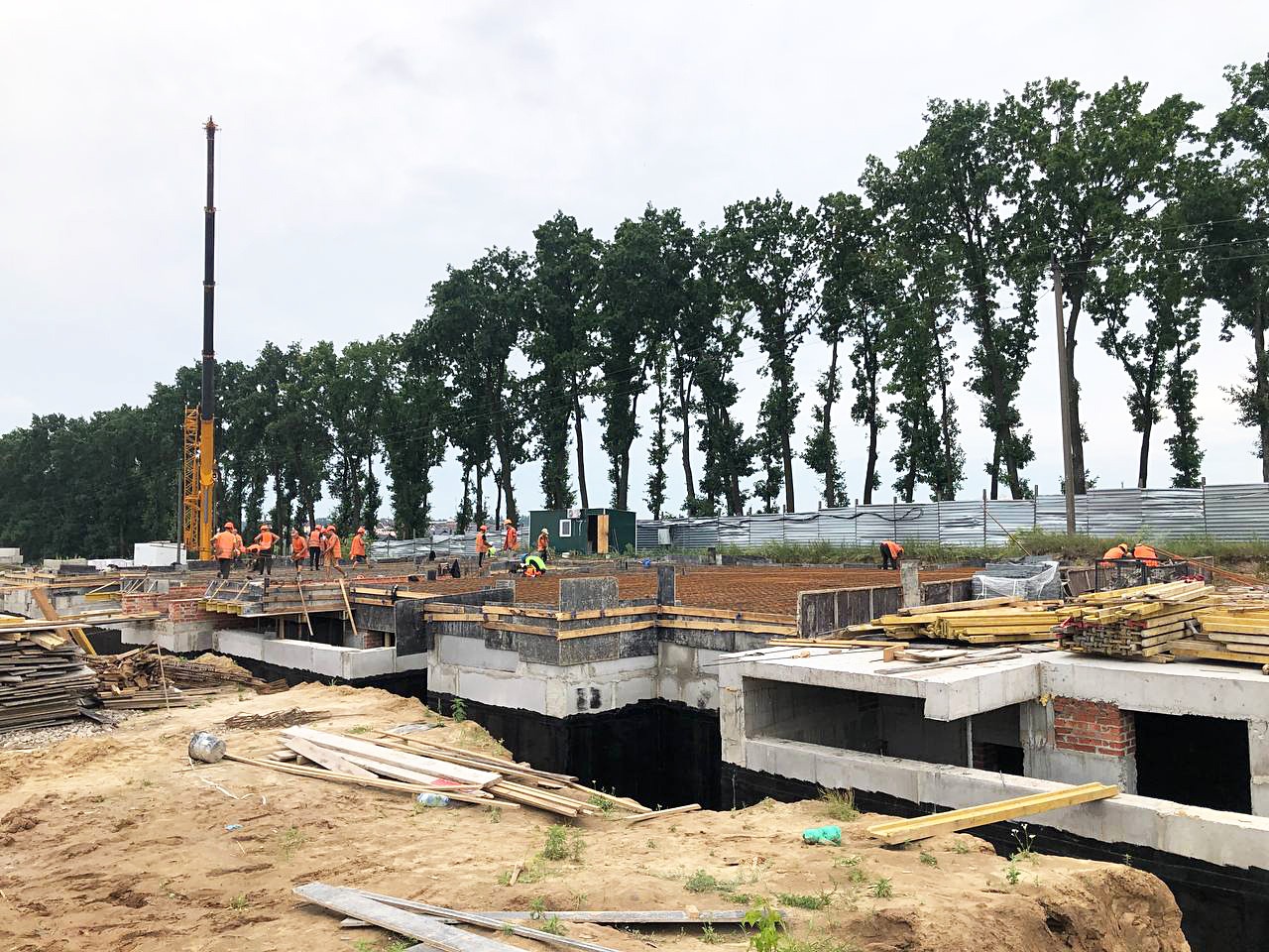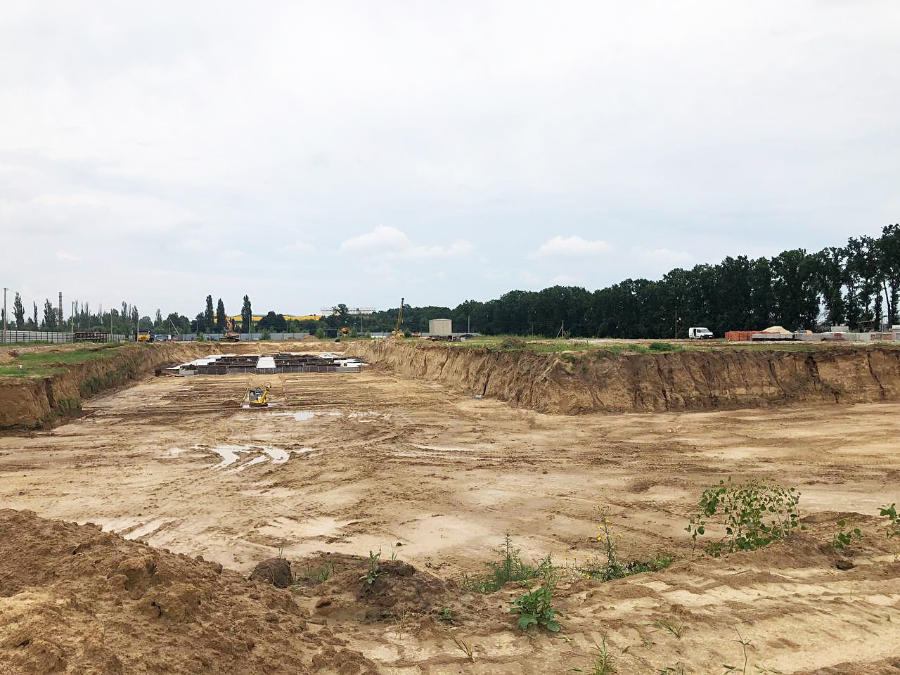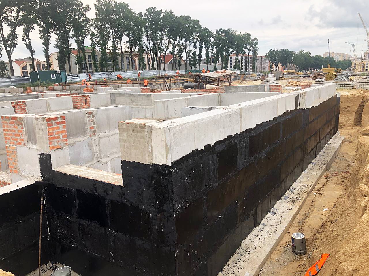 Хід будівництва липень 2023р. БУДІВНИЦТВО ПЕРШОЇ ЧЕРГИ: 1й буд. – будівництво цокольного поверху 90% 2й буд. – влаштування фундаменту 40% 3й буд. – влаштування котловану під фундамент.