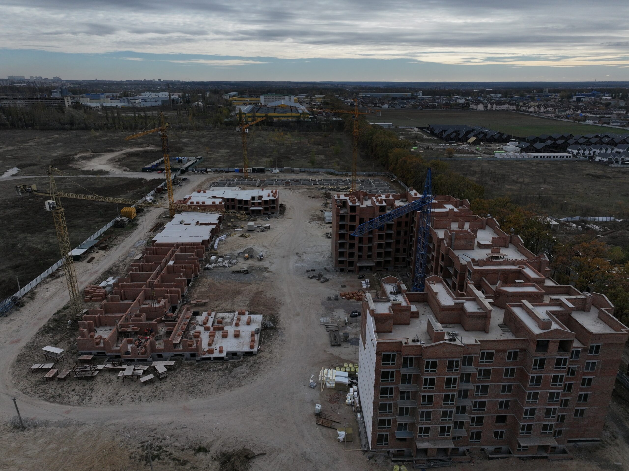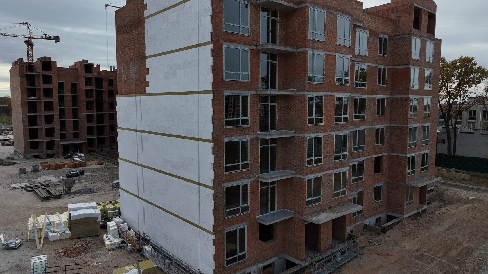 - 1й буд. – завершено будівництво останнього шостого поверху, триває процес монтажу вікон, розпочато роботи з утеплення фасаду