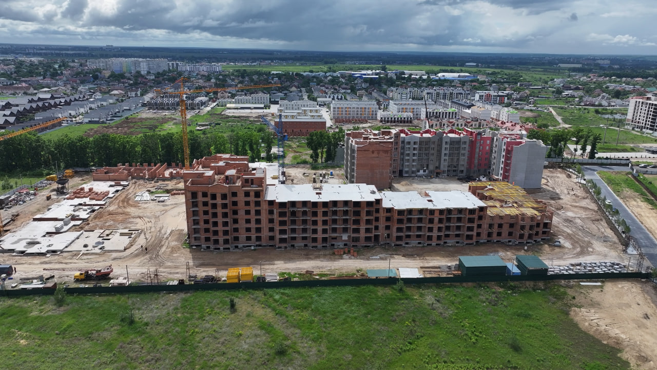 - 1-й будинок – Тривають роботи з утеплення фасаду та розпочато фарбування. Ведуться роботи з прокладання внутрішніх електромереж і сантехнічних комунікацій. Виконуються штукатурні роботи та стяжка підлоги. Розпочато монтаж ліфтів.