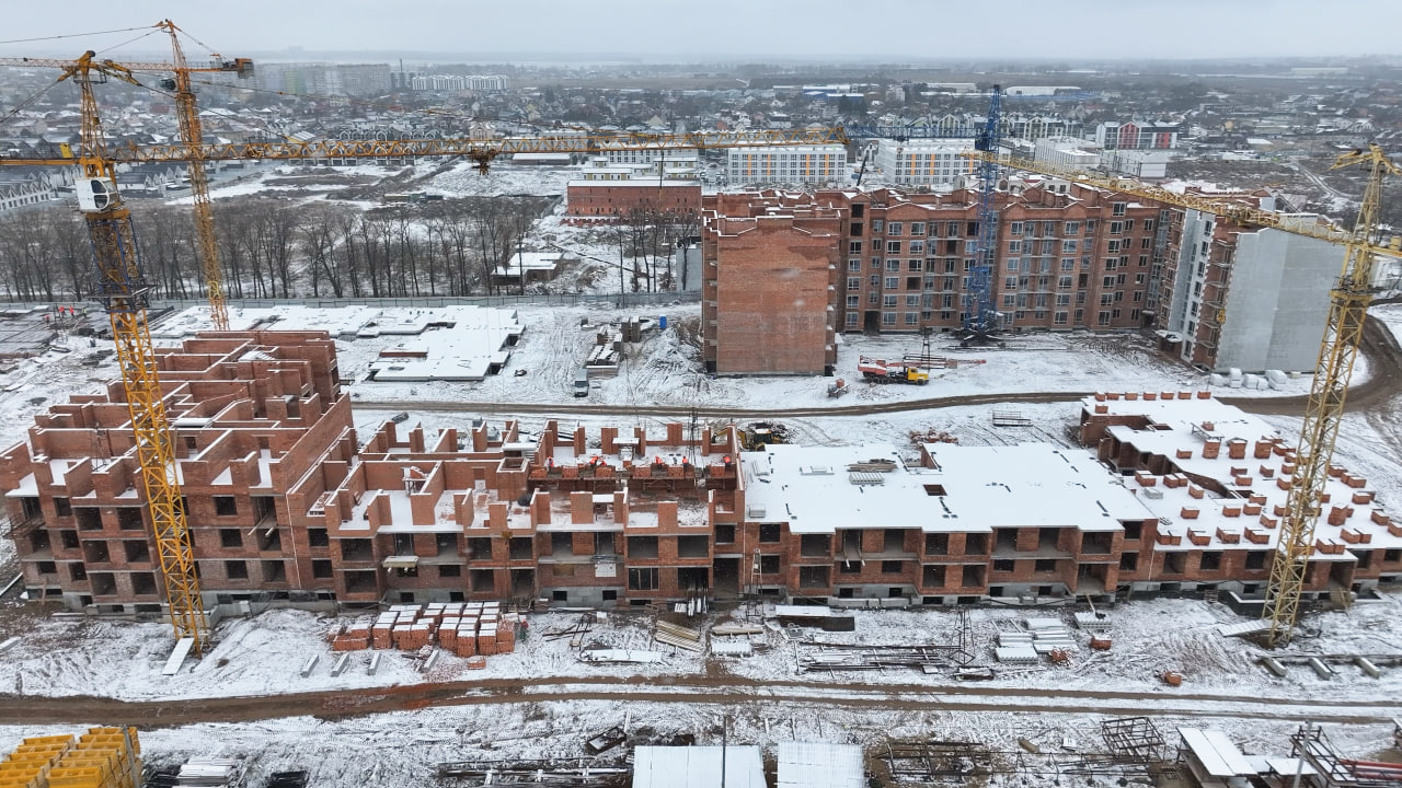 - 2-й будинок – Завершено мурування зовнішніх стін четвертого поверху по секціях 5–6, виконуються роботи з мурування внутрішніх перегородок. Розпочато роботи з мурування зовнішніх стін третього поверху секціі 4-3.